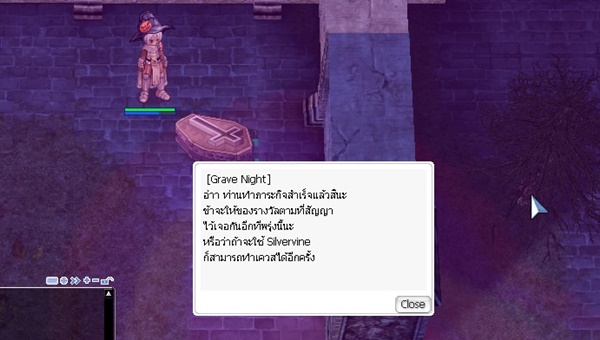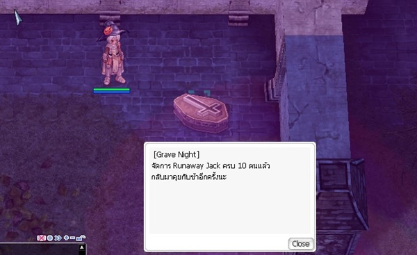 คุยกับ NCP ชื่อ Grave Night เข้าไปคุยเพื่อรับเควส เขาจะพูดถึงผีที่หลุดออกไปอาละวาด ตามแผนที่ต่างๆ โดยการกำจัด Runaway Jack 10 ตัว