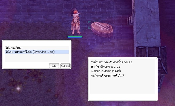 ผู้เล่นสามารถใช้ Silvervine 1 ea ในการรีเซ็ต กิจกรรมเพื่อทำใหม่ได้