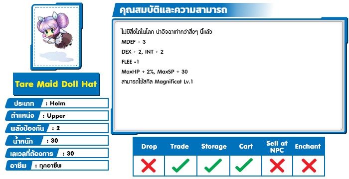 ไอเทมสวมใส่ทั้งหมดในการอัพเดตครั้งนี้ จะอิงความสามารถตามคำอธิบาย "ภาษาไทย" เท่านั้น หากไอเทมชิ้นใดยังแสดงผลความสามารถในคำอธิบาย "ภาษาอังกฤษ" ทีมงานจะปรับความสามารถของไอเทมกลับมาเป็นภาษาไทย