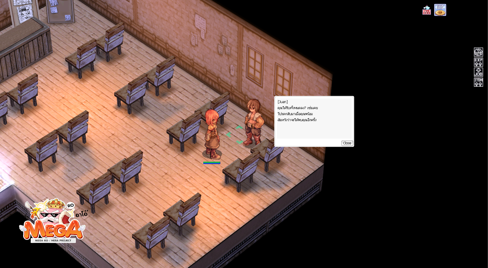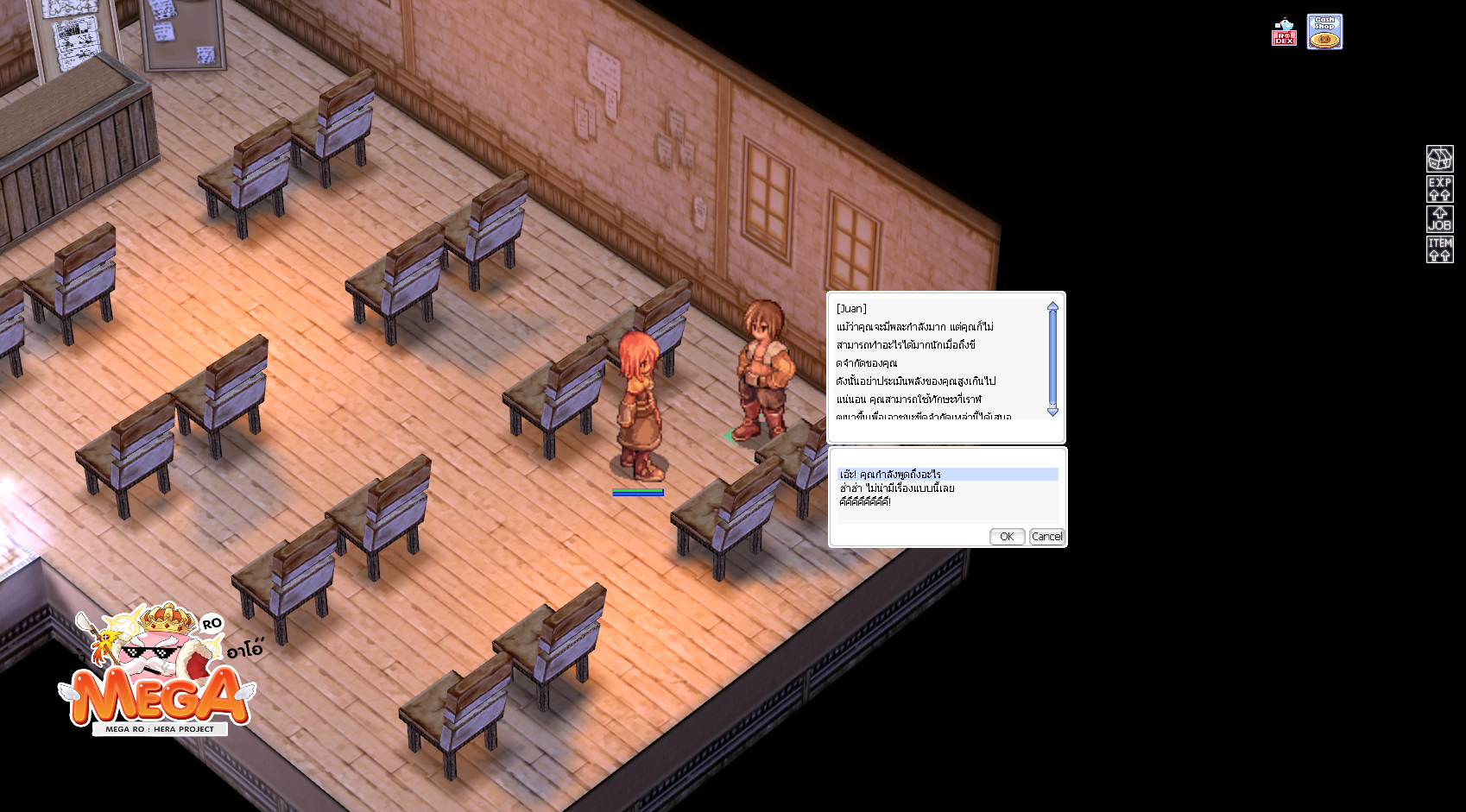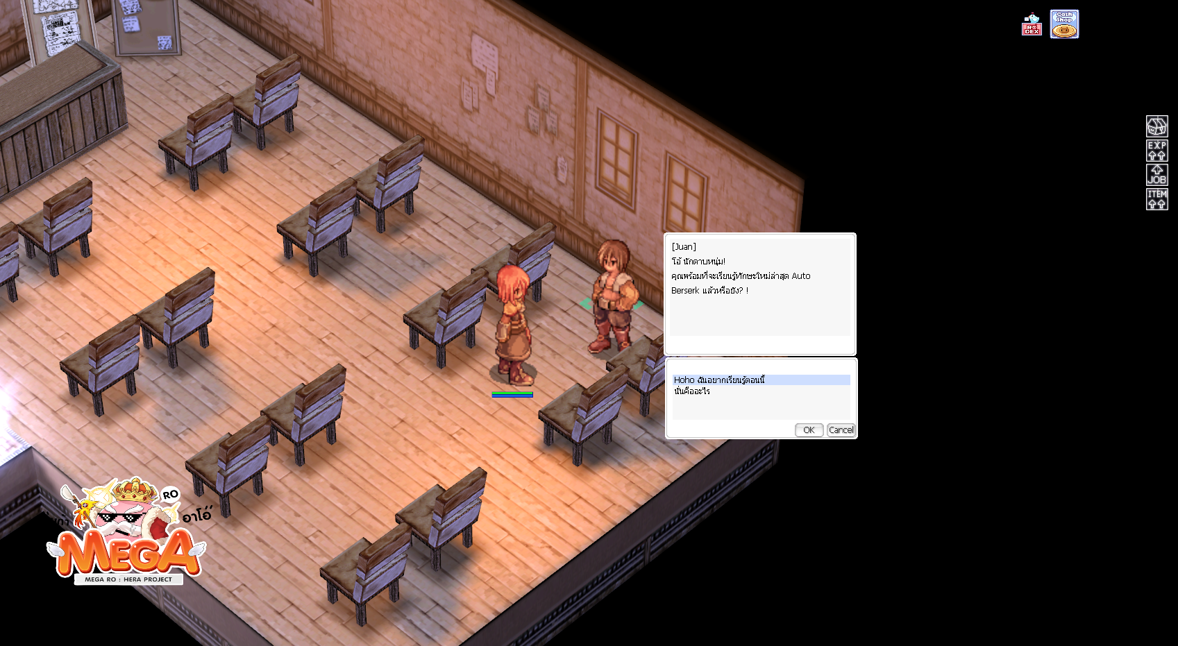 2. เมื่อเข้าไปให้เดินไปวาร์ปบน จะเจอกับ NPC Juan เมื่อคุยกับเขาให้เลือก “หืม ?? ท่านกำลังหมายถึงอะไร ?” เขาจะให้เราหาไอเทมมาให้
