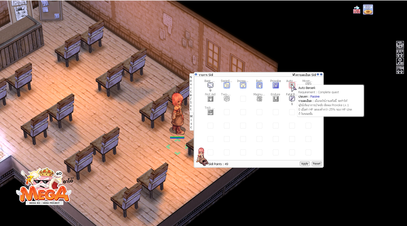 3. เมื่อเราหามาครบตามจำนวนที่ระบุ เราจะได้สกิล [![Berserk.png](https://irowiki.org/w/images/4/44/Berserk.png)](https://irowiki.org/wiki/File:Berserk.png) [Auto Berserk](https://www.divine-pride.net/database/skill/146/auto-berserk) เป็นการเสร็จสิ้น