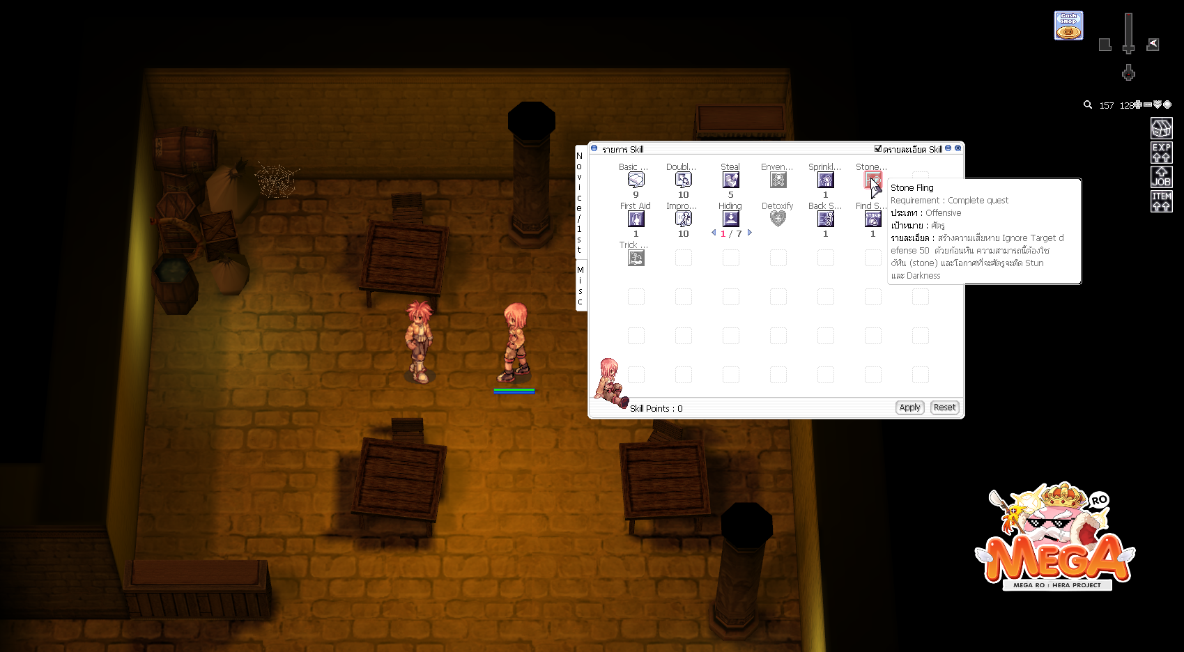 2. เมื่อหาของครบ กลับมาส่งเขา เราจะได้สกิล [![Stone Fling.png](https://irowiki.org/w/images/4/4f/Stone_Fling.png)](https://irowiki.org/wiki/File:Stone_Fling.png) [Stone Fling](https://www.divine-pride.net/database/skill/152/stone-fling) เป็นการเสร็จสิ้น
