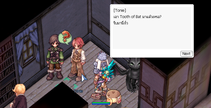 เราจะพูดคุยเรื่องการแก้ De Buff โดยพูดถึงเรื่องยารักษาที่สร้างจาก Re Herb แล้ว NPC จะให้เราไปหา Tooth of Bat 1ea มาส่งให้
