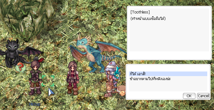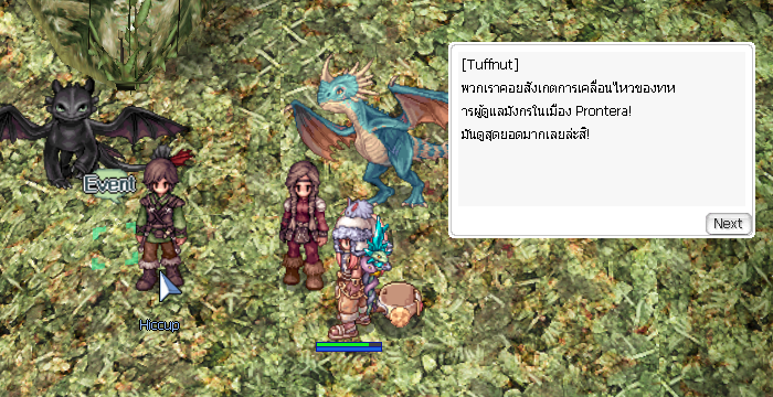 เมื่อแจ้ง Benjamin เสร็จแล้วให้กลับมาหา Hiccup ที่ Abyss lake อีกครั้ง โดยเราจะต้องไปตามหาสองพี่น้องและมังกรที่กำลังซุกซนอยู่ที่เมือง prontera