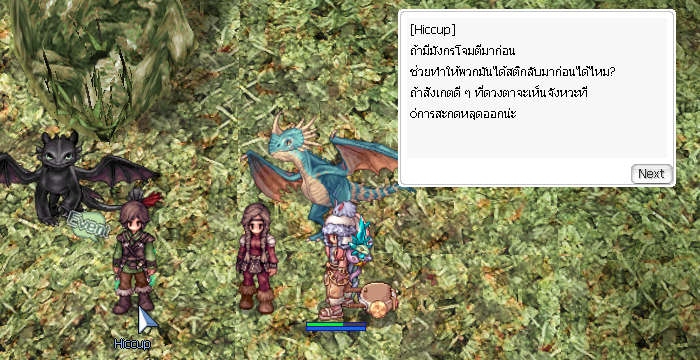 เมื่อเราเข้ามาสู่พื้นที่ที่เกิดเหตุ เดินมาทางซ้ายมือนิดๆ ก็จะพบกับ Hiccup ที่รอความช่วยเหลืออยู่