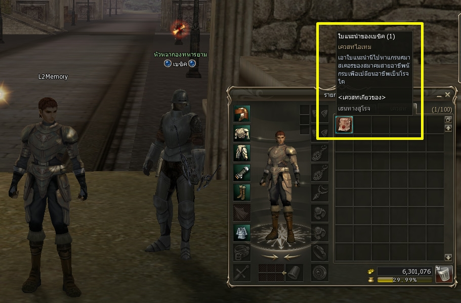 1. เริ่มรับเควสได้ที่ NPC หัวหน้ากองทหารยาม เบซิค ที่หมู่บ้านกลูดิน