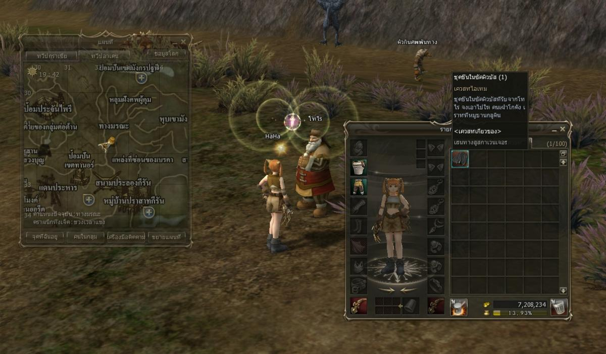 2. ให้มาคุยกับ NPC คนขายของเบ็ดเตล็ด มีโอน อยู่ใน ร้านขายของเบ็ดเตล็ด เขาจะสุ่มไอเท็มให้เรา 1 ใน 3 ชิ้น ให้เราไปส่งของให้เขา แล้วกลับมารับใหม่ไปส่งใหม่ ( ประมาณ 5 รอบ )