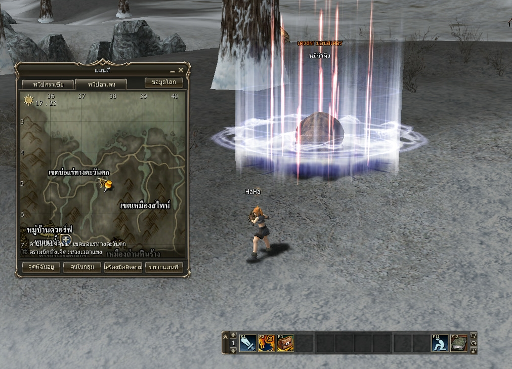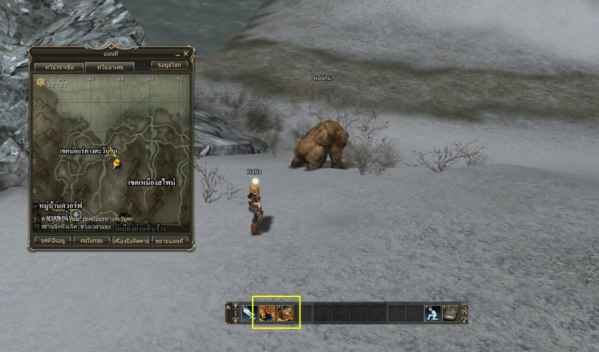 5. ออกตามล่าหมีนักล่า ให้เราโจมตีหมีนักล่าจนกว่าจะมี เควสมอนเตอร์ หมีน้ำผึ้ง ออกมา //เทเลพอร์ตจากหมู่บ้านดวอร์ฟ ไปยัง เขตบ่อแร่ทางตะวันตก(ชายทะเลภาคกลาง) จะถึงเลยทันที