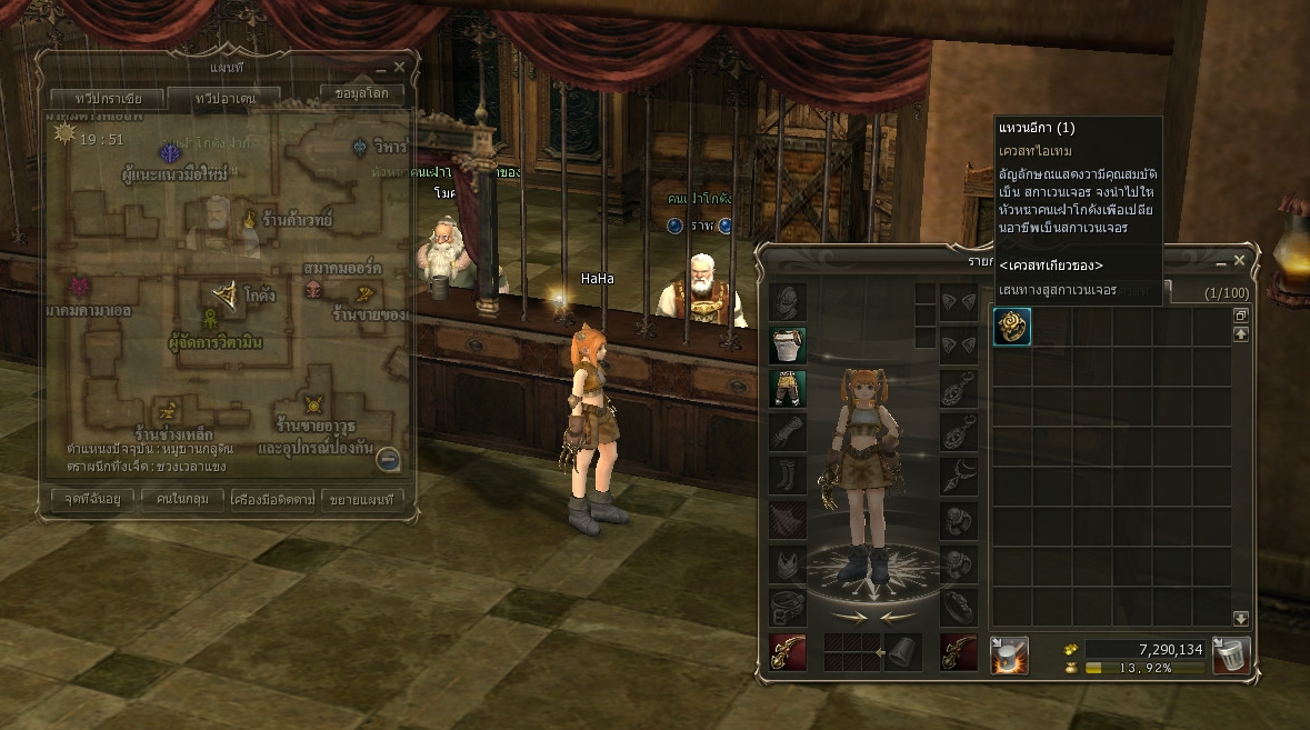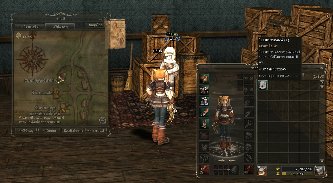 2.1 หากได้ไอเท็ม ขวานของชารี ให้มาส่งที่ NPC คนขายอุปกรณ์ป้องกัน ชารี อยู่ในร้านนขายอาวุธและอุปกรณ์ป้องกัน